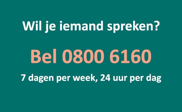 Als je hulp of advies nodig hebt dan kun je ons bellen op 0800 - 6160. We zijn 7 dagen per week, 24 uur per dag bereikbaar.